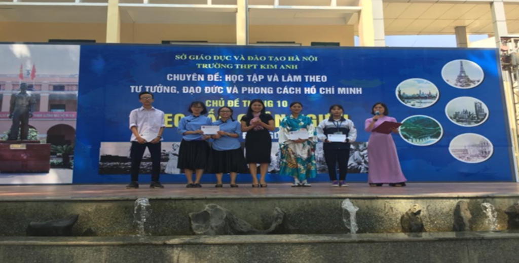“ Khi tôi còn là hạt bụi, Người đã lên tàu đi xa…” đó là những ca từ đầy xúc động gợi nhớ về Người – Bác Hồ kính yêu, mà thầy và trò trường THPT Kim Anh đã thể hiện trong tiết mục mở đầu cho chuyên đề “Theo dấu chân Người” của tổ Sử- Địa- GDCD.