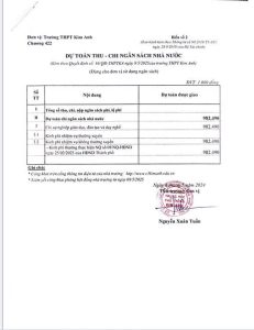 bố công khai dự toán ngân sách nhà nước năm 2026 của Trường THPT Kim Anh