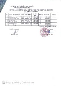 CÔNG KHAI HỖ TRỢ CHI PHÍ HỌC TẬP HỌC KÌ I NĂM HỌC 2025-2026