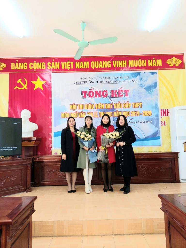 Hội thi Giáo viên dạy giỏi cụm Sóc Sơn – Mê Linh năm học 2019-2020 diễn ra trong 2 ngày 28,29/11 với sự tham gia của các thầy, cô giáo là đại diện của các trường THPT trong cụm ở các bộ môn: Ngữ Văn, Địa Lý và Tin Học. Trường THPT Kim Anh có hai cô giáo tham gia dự thi: cô Trần Thị Hằng dự thi môn Ngữ Văn và cô Đàm Thị Thùy dự thi môn Địa Lý.