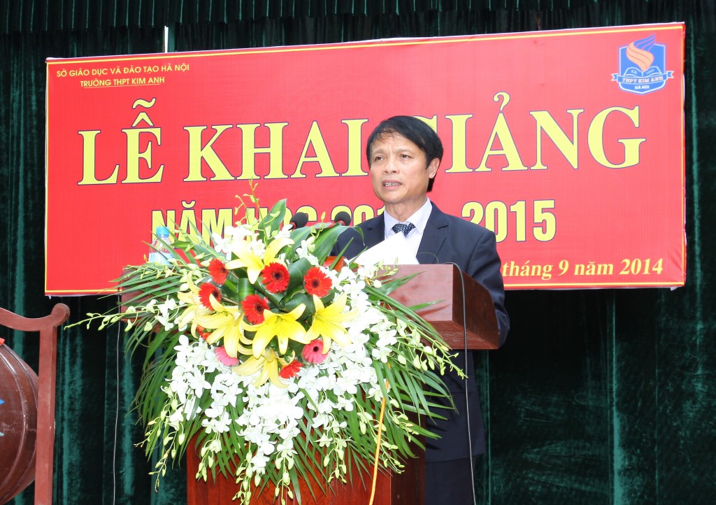 Cô giáo Trần thị Hương Hải – Bí thư Chi bộ, Hiệu trưởng nhà trường đọc Diễn văn khai giảng năm học mới. Bài diễn văn đã nêu bật những thành tích mà nhà trường đã đạt được trong những năm học vừa qua, đặc biệt là năm học 2013-2014, đồng thời cũng khẳng định sự quyết tâm phấn đấu của thầy và trò trường THPT Kim Anh trong năm học mới 2014-2015 để đạt được nhiều thành tích chào mừng Kỷ niệm 50 năm thành lập trường.