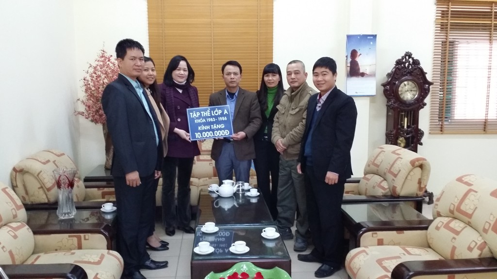 Để thể hiện những tình cảm đối với trường Kim Anh , tập thể lớp đã có hành động thiết thực chuẩn bị cho Kỷ niệm 50 năm thành lập trường. Ngày 17 tháng 1 năm 2015, các anh chị: Nguyễn Xuân Thắng, Đồng Minh Tiến, Bùi Thị Thắm – đại diện cho tập thể lớp – đã trao tặng cho nhà trường số tiền là 10.000.000 (mười triệu đồng) góp một phần hỗ trợ cho các hoạt động Kỷ niệm 50 năm thành lập trường. Thay mặt cho tập thể giáo viên, nhân viên và học sinh của nhà trường, cô giáo Trần Thị Hương Hải – Bí thư chi bộ, Hiệu trưởng nhà trường – đã cảm ơn và đón nhận những tình cảm quý giá và sự đóng góp của tập thể lớp cho nhà trường.
